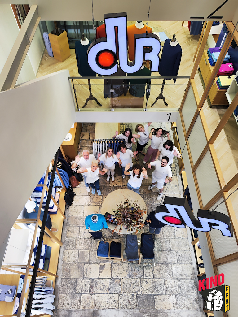 Στο πλευρό της διοργάνωσης, η DUR ανέλαβε την επιμέλεια της ένδυσης της ομάδας των εθελοντών, με την προσφορά μπλουζών για το φεστιβάλ. Η συμβολή αυτή αναδείχθηκε ουσιαστική: η αισθητική ενότητα, η αναγνωρισιμότητα και ο επαγγελματισμός που απέπνεαν οι εθελοντές ενίσχυσαν την εικόνα και τη λειτουργικότητα του φεστιβάλ, ενώ ταυτόχρονα ανέδειξαν το ήθος και την οργάνωση πίσω από τη δράση. Οι εθελοντές – ο ζωντανός πυρήνας του KinoFest – αποτέλεσαν μια δυναμική και εναρμονισμένη παρουσία που αποτυπώθηκε θετικά στη συνείδηση κοινού και συμμετεχόντων.