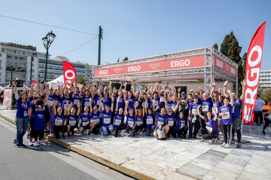 Η ERGO Running Team έδωσε δυναμικό «παρών» με 335 μέλη, ενώ για πρώτη φορά αρκετοί εργαζόμενοι της εταιρείας συμμετείχαν με τα παιδιά τους στον οικογενειακό αγώνα Family Run. Σημείο συνάντησης όλων των δρομέων της ομάδας ήταν το «περίπτερο» της ERGO δίπλα στη γραμμή τερματισμού, όπου έβγαλαν αναμνηστικές φωτογραφίες και συμμετείχαν στη δράση της εταιρείας με τίτλο “Κάθε βήμα σου, Ανάσα Ζωής”, μια πρωτοβουλία σε συνεργασία με την Aegean Rebreath για την απορρύπανση των θαλασσών.